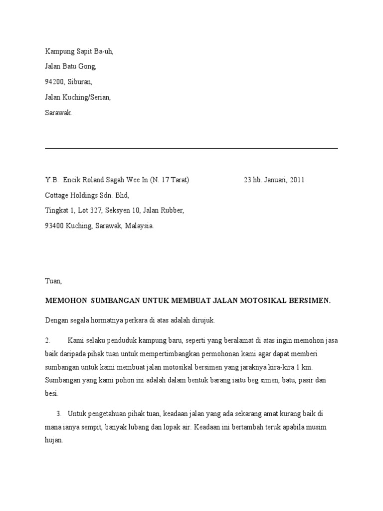 30 julai 2013 tuan. Pengarah pejabat tanah 96000 sibu sarawak. Contoh surat minta sumbangan yb.